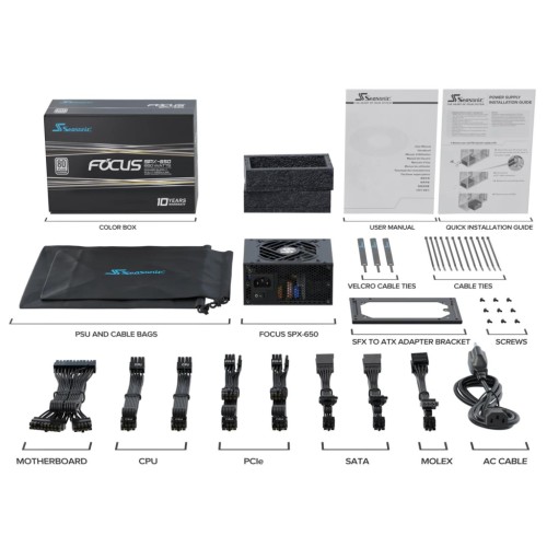 FOCUS SPX (FOCUS-SPX-650) — це втілення інженерної точності та продуманого дизайну від Seasonic. Він поєднує компактність SFX-формату, потужність, універсальність та тишу, яку цінують користувачі, що прагнуть надійного джерела живлення для сучасного ПК.