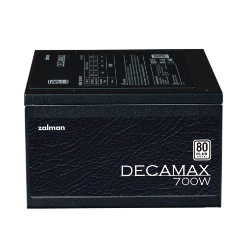 Важливим елементом Zalman Decamax є активний модуль PFC (99%), який забезпечує стабільну потужність та водночас підвищує енергоефективність пристрою. У складі компонентної бази блок обладнано високопродуктивними конденсаторами, які витримують температуру до 105 градусів Цельсія, що гарантує довговічність та стабільність роботи навіть за інтенсивних навантажень.