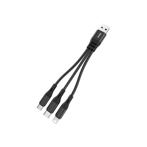 Дата кабель USB 2.0 AM to Lightning + Micro 5P + USB-C 0.25m 2.4A nylon X47 black HOCO (6931474727398)