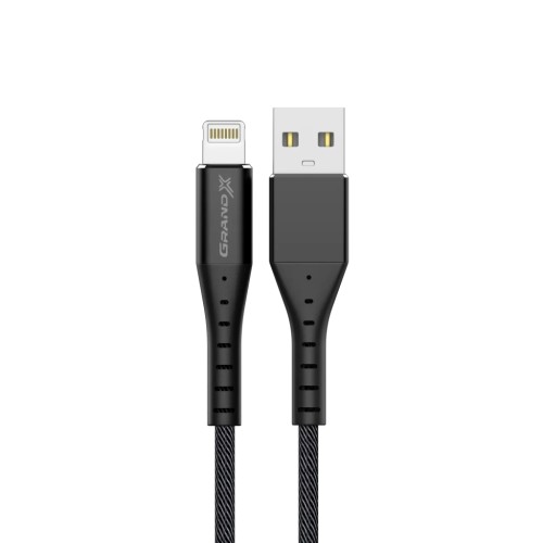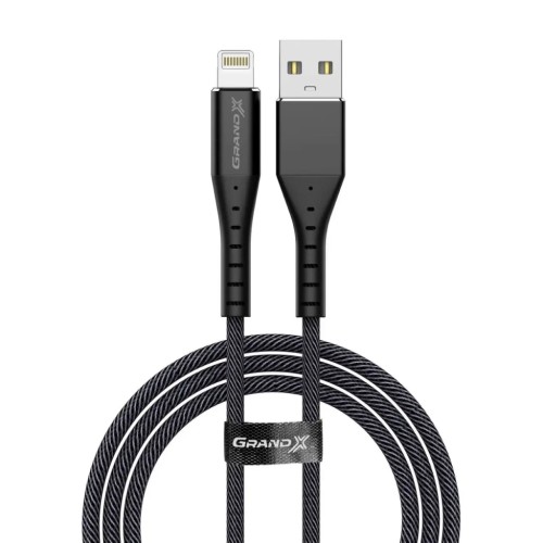 Grand-X USB-Lightning FL-12B - це кабель для підключення пристроїв Apple з портом Lightning до USB-порту. Кабель має довжину 1.2 метри, чорний колір і товсте обплетення з нейлону, що забезпечує додаткову міцність та захист від пошкоджень.