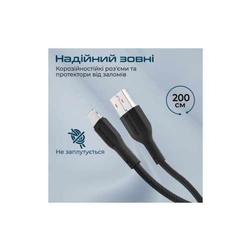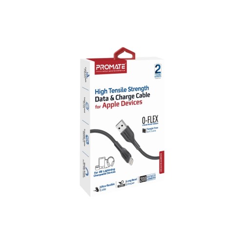 Дата кабель USB 2.0 AM to Lightning 2.0m 2A black Promate (xcord-ai200.black)