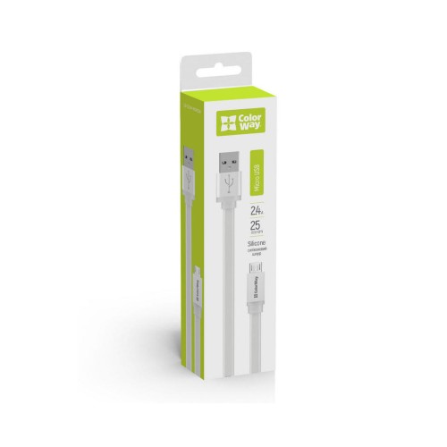 Дата кабель USB 2.0 AM to Micro 5P 0.25m white ColorWay (CW-CBUM-MUM25W)