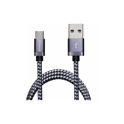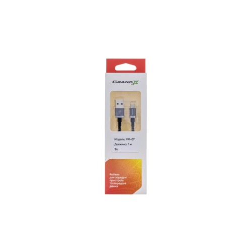 Дата кабель USB 2.0 AM to Micro 5P 1.0m 3A silver black Grand-X (FM07SB)