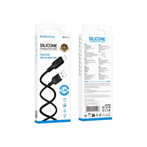 Дата кабель USB 2.0 AM to Micro 5P 2.0m Lenny silicone BX113 black BOROFONE (6941991115493)