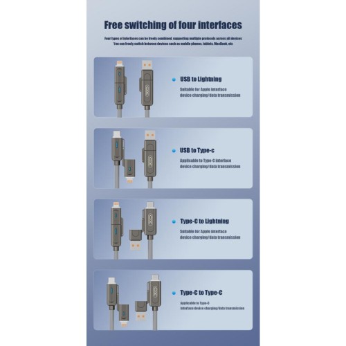 Дата кабель USB 2.0 AM to USB-C + USB 2.0 AM to Lightning 1.0m 60W gray XO (NB275_4-in-1_Gray)