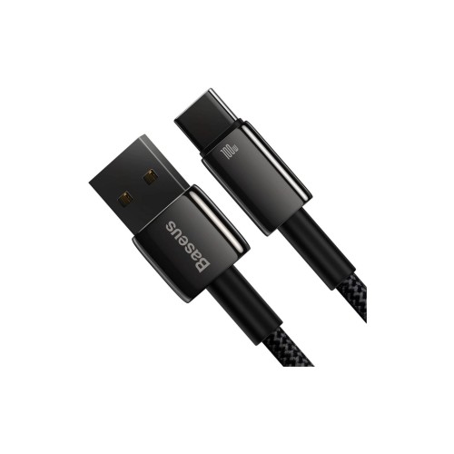 Baseus Tungsten Gold 100W AM / Type-C — якісний кабель наділений хорошою потужністю та забезпечує хорошу швидкість передачі даних. Підтримує стандарти швидкого заряджання й наділений потужністю 100 Вт, що дозволяє заряджати не лише телефони чи планшети, а й ноутбуки.