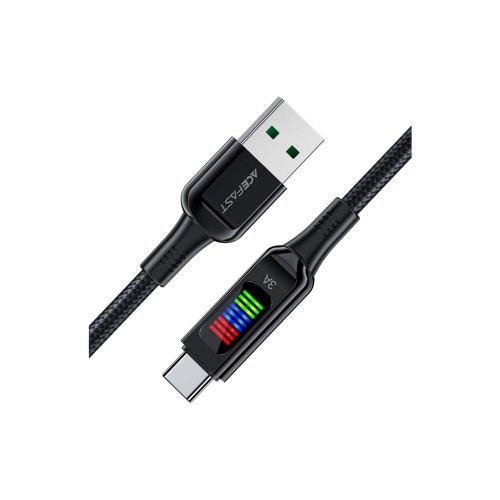 Дата кабель USB 2.0 AM to USB-C 1.2m 3A nylon with LED C7-04 black Acefast (6974316282785)