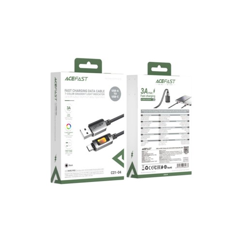 Acefast C21-04 USB 2.0 AM-Type-C M - надійний кабель для пристроїв із роз’ємом USB-C, зокрема ноутбуків, планшетів та смартфонів. Він забезпечує стабільне заряджання з зарядним струмом до 3А.