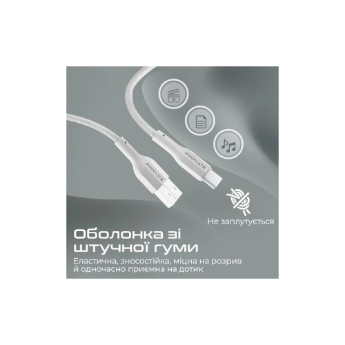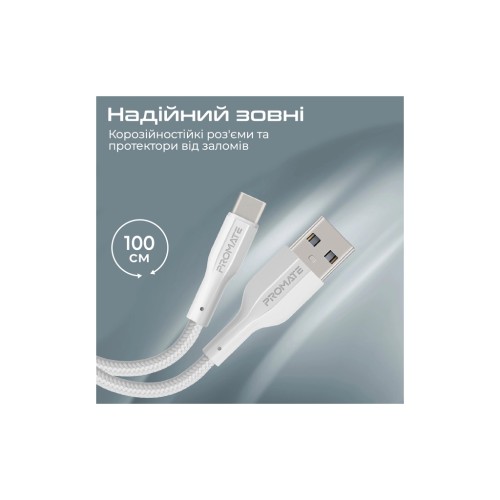 Дата кабель USB 2.0 AM to USB-C 1.2m Promate (xcord-ac.white)