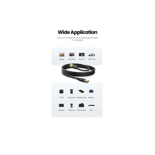 Кабель Ugreen US128 USB-A 3.0 1 м Чорний (10370) підключає периферійний пристрій USB з портом USB 3.0 типу A до комп'ютера для швидкої передачі файлів. Він діє як розширення для з'єднання USB 3.0.