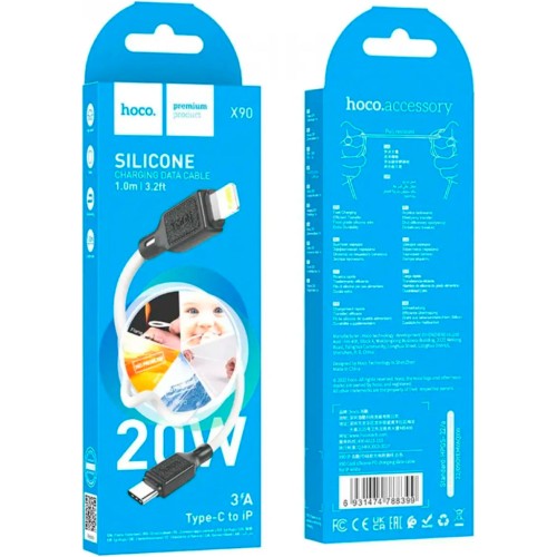 Дата кабель USB-C to Lightning 1.0m Cool silicone PD 20W X90 white HOCO (6931474788399)