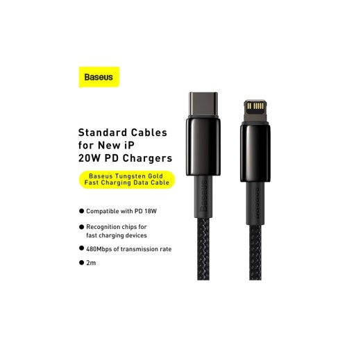 Дата кабель USB-C to Lightning 2.0m Tungsten Gold Fast Charging, PD 20W black Baseus (CATLWJ-A01)