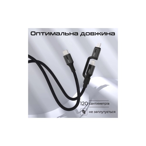 Дата кабель USB-C to USB-C + Lightning black Promate (powerlink-cci.black)