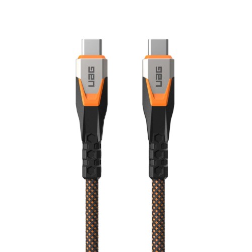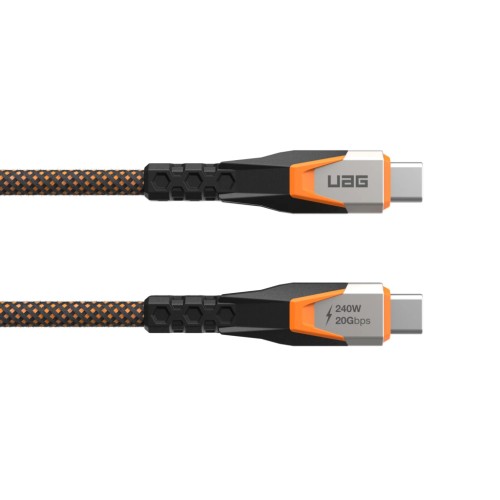 Кабель UAG 3.2 USB-C 20 Гбіт/с 240 Вт — преміальний та міцний кабель для заряджання та передачі даних. Довжина 0.75 метрів ідеально підходить для підключення до телефону, планшета або ноутбука, забезпечуючи до 240 Вт швидкого заряджання та 20 Гбіт/с передачі даних. Різноспрямована шестигранна матриця для зняття натягу забезпечує покращений захист від багаторазових вигинів. Обернутий в плетений нейлон для міцності та довговічності.