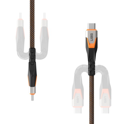 Дата кабель USB-C to USB-C 0.75m v3.2 240W Rugged double braided nylon black+orange UAG (9B4415114097)