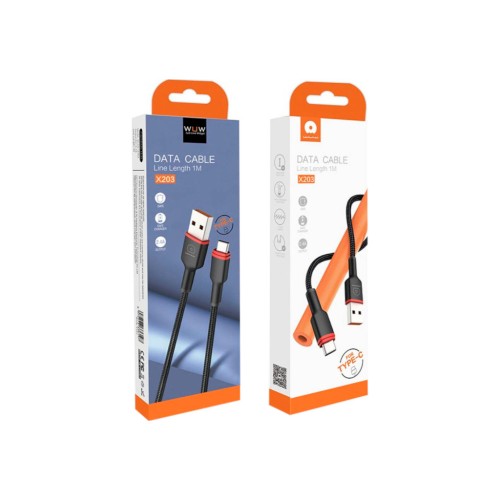 Дата кабель USB-C to USB-C 1.0m 2.4A X203 black WUW (6972573336203)