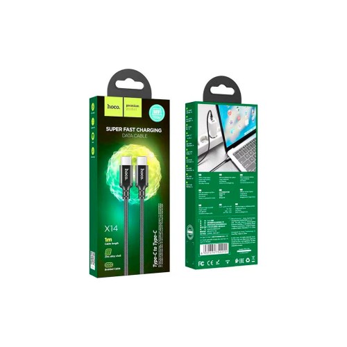 Дата кабель USB-C to USB-C 1.0m 60W nylon X14 black HOCO (6931474752215)