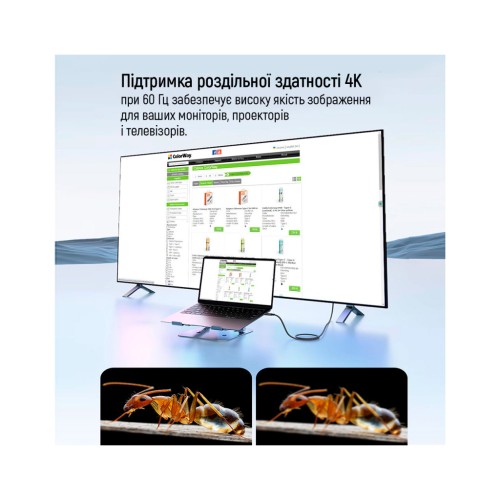• Передача відео: Підтримка роздільної здатності 4K при 60 Гц забезпечує високу якість зображення для ваших моніторів, проекторів і телевізорів.
