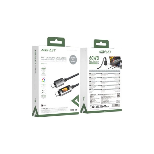 Дата кабель USB-C to USB-C 1.2m 60W black Acefast (6974316284666)