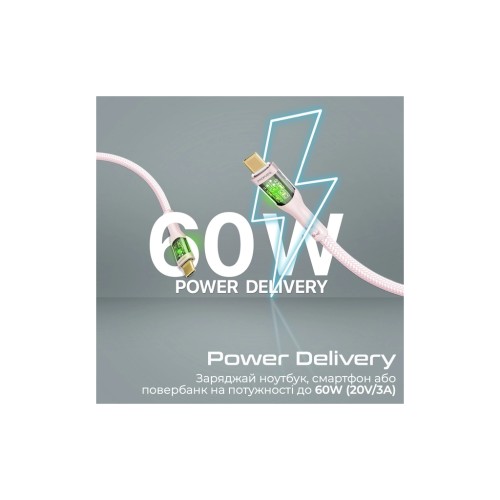 Дата кабель USB-C to USB-C 1.2m 60W PD TransLine-CC pink Promate (transline-cc.pink)