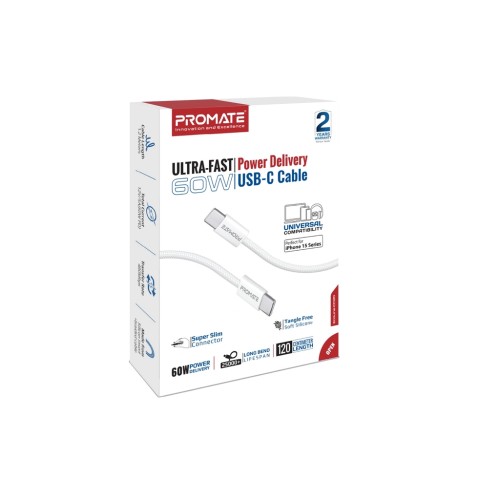 Дата кабель USB-C to USB-C 1.2m Promate (ecoline-cc120.white)