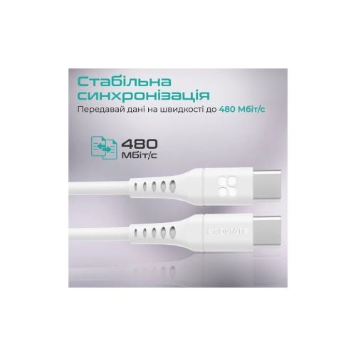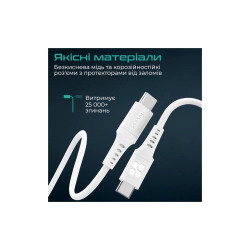 Дата кабель USB-C to USB-C 1.2m Promate (powerlink-cc120.white)