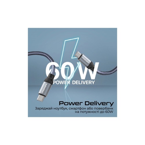 Дата кабель USB-C to USB-C 1.2m Promate (springy.grey)