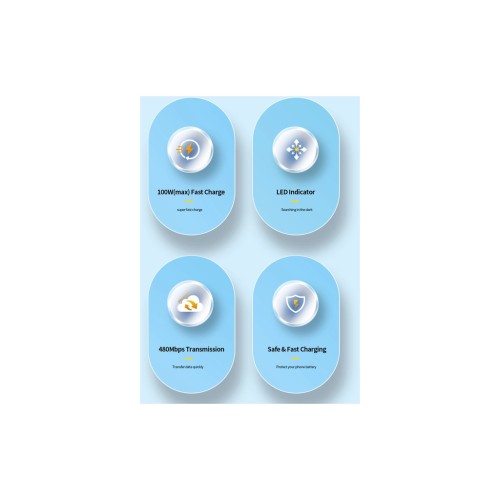 тканинне обплетення; максимальна швидкість передачі даних: 480 МБ/с; 100 Вт; Протоколи швидкого заряджання: PD3.0/QC4.0/Huawei FCP/Samsung AFC