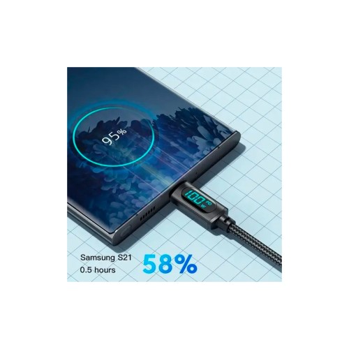 Кабель Essager Led Digital Display Type-C to Type-C (100W, 5A) - надійний та довговічний аксесуар для заряджання та синхронізації гаджетів з інтерфейсом Type-C. Щільна нейлонова оболонка дроту та корпусу штекерів з алюмінію сприяють міцності та довговічності зарядного кабелю. Висока потужність дозволяє за короткий час відновити заряд акумулятора телефону, планшета чи ноутбука.