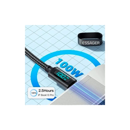 Особливості кабелю Essager Led Digital Display Type-C to Type-C (100W, 5A):