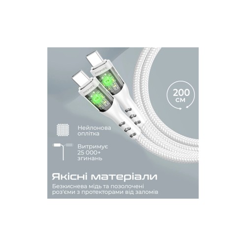 Дата кабель USB-C to USB-C 2.0m Promate (transline-cc200.white)