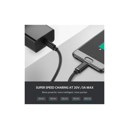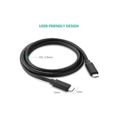 Кабель допоможе вчасно встановити заряд аккумулятора гаджетів. Він здійснює перенесення інформації між пристроями, які будуть безпечнішими, ніж бездротове з'єднання. з обох боків кабелю є сучасні штекери USB Type-C. Кабель Ugreen має оптимальну длину, що дозволяє розміщувати підключений пристрій в зручному положенні та не допускати сплутування. Обшивка виконана із сучасного, м'якого нейлону, що забезпечує практичному аксесуару довгий та продуктивний термін роботи. Крім того, кабель також підтримує 3A вихідної потужності зарядки стандарту QC 3.0 PD, а також швидкість передачі даних 480Mbps.