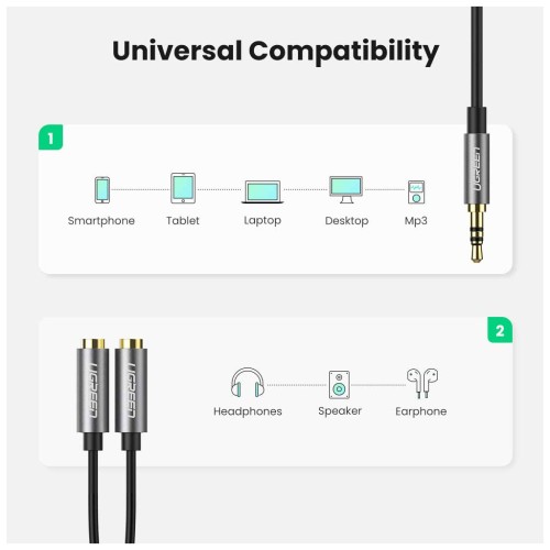 Кабель мультимедійний 3.5mm M to 2x3.5mm F 0.2m AV123 black Ugreen (10532)