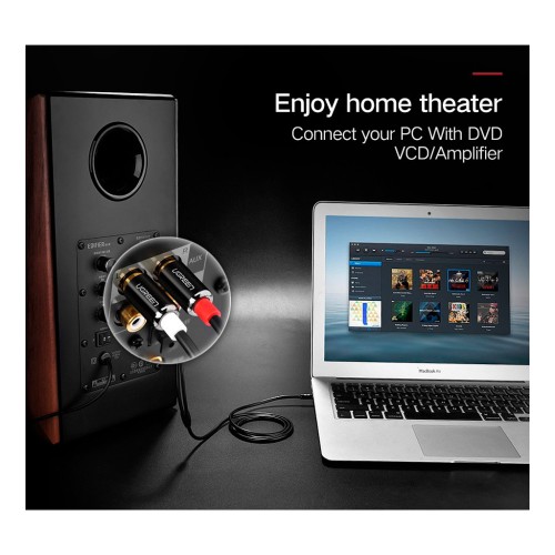 Кабель мультимедійний 3.5mm M to 2xRCA M 5.0m AV116 black Ugreen (10591)