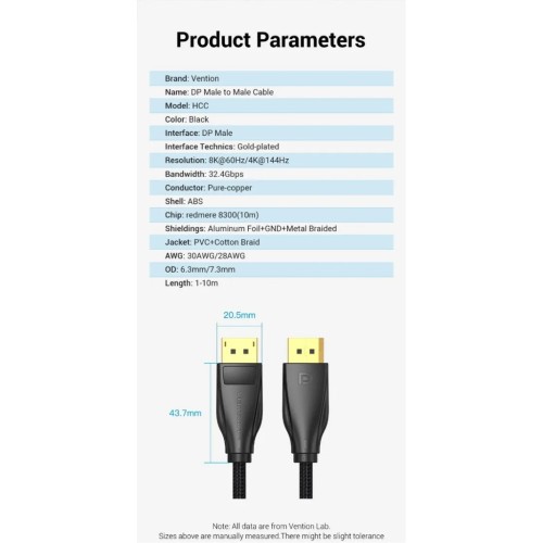 Кабель мультимедійний DisplayPort M to DisplayPort M 1.5m black Vention (HCCBG)