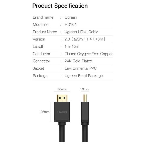 Кабель мультимедійний HDMI M to HDMI M 1.5m HD104 black Ugreen (60820)