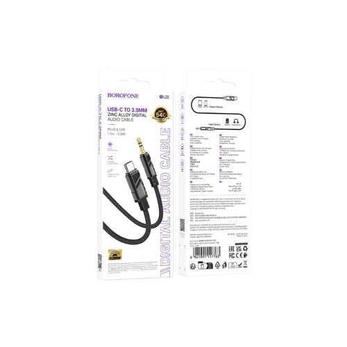 BOROFONE BL22 Dignity Digital Audio Conversion Cable Type-C Black — це зручний і надійний адаптер для сучасних пристроїв, який забезпечить комфорт і якість звучання на високому рівні.