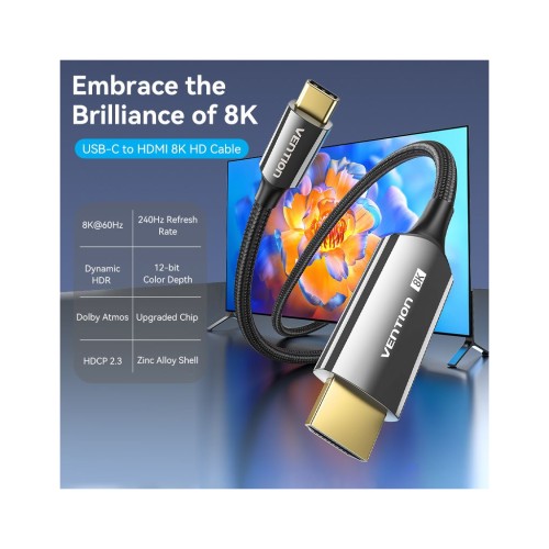 Кабель мультимедійний USB-C to HDMI M 1.8m 8K60Hz black VENTION (CRCBAC)