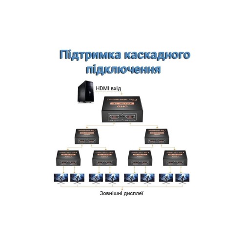 • Одночасне підключення 2-х моніторів HDMI до 1 відеосигналу відображаються одночасно.
