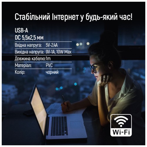 Цей кабель дозволяє забезпечувати стабільний доступ до Інтернету навіть тоді, коли електроживлення недоступне чи обмежене. Вставте один кінець USB-кабелю в Power Bank або USB-зарядку, а інший - у ваш роутер, щоб мати неперервний доступ до Wi-Fi мережі, навіть при відключенні електроенергії.