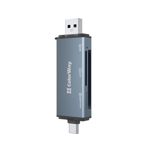 Зчитувач флеш-карт ColorWay USB 2.0/USB-C to CF/SD/MicroSD (CW-CR-01)