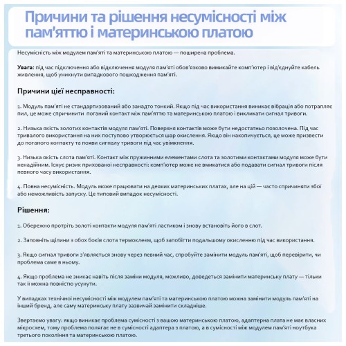 ⚠ Підтримка залежить від сумісності материнської плати та BIOS.