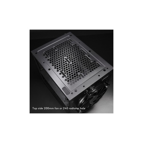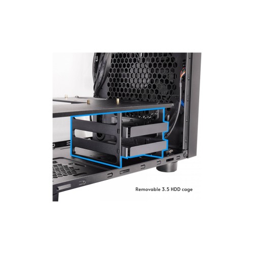 Корпус сумісний з блоками живлення АТХ та розрахований на встановлення відеокарт довжиною до 335 мм. Два відсіки для встановлення 3.5" HDD та два відсіки для 2.5" SSD забезпечують гнучкість конфігурації сховища.