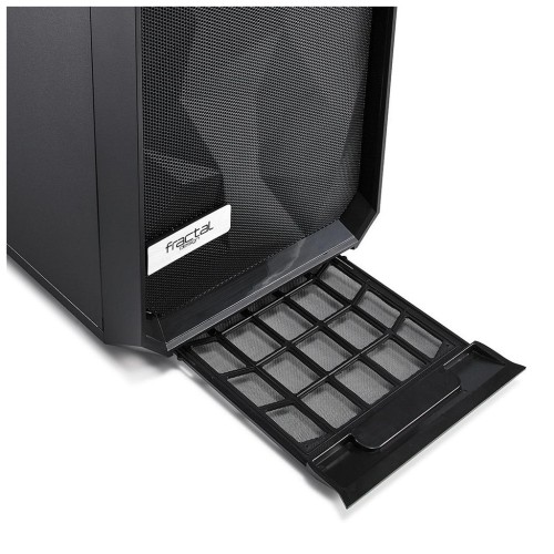 Одна з головних переваг корпусаного дизайну Meshify C — це стильна передня панель, що нагадує грані чорного алмазу. Ця асиметрична структура не лише створює вражаючий візуальний ефект, але і максимізує забір повітря, забезпечуючи інтенсивну вентиляцію для оптимальної продуктивності системи.