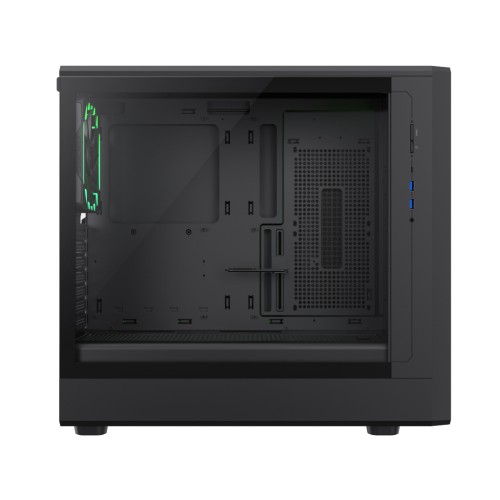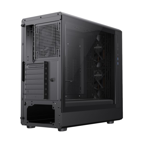 Фронтальна панель із «кігтями» та ексклюзивні вентиляційні отвори на боковій частині не лише підкреслюють ігровий стиль, а й оптимізують циркуляцію повітря. Сталева сітка спереду та вертикальна схема продування сприяють кращому охолодженню компонентів навіть під час інтенсивних навантажень.
