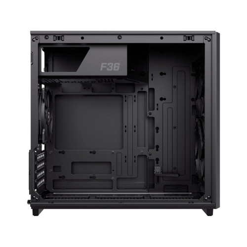 Просторий та функціональний інтер'єр корпусу забезпечує безпроблемну установку сучасних відеокарт довжиною до 350 мм та процесорних кулерів висотою до 169 мм. Підтримка материнських плат формату Micro-ATX та Mini-ITX робить Gamemax F36 Dark універсальним вибором для створення будь-якої конфігурації. Доступно два внутрішні відсіки для 3.5-дюймових накопичувачів та три для 2.5-дюймових, що дозволяє оптимально розподілити простір під встановлення пристроїв.