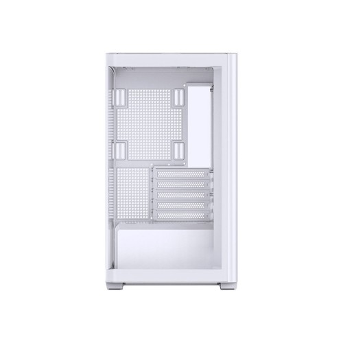JONSBO D300 відзначається своїм типорозміром Minitower, що дозволяє зручно розмістити всі необхідні компоненти навіть у компактному просторі. Корпус підтримує материнські плати форматів Micro-ATX і Mini-ITX, що розширює можливості для вибору оптимальної конфігурації. Щоб забезпечити високу продуктивність без перегріву, передбачено встановлення додаткових вентиляторів: три на верхній панелі, три на нижній, одного — на задній стінці, а також три на боковій. Це забезпечує ефективну вентиляцію та захист від нагрівання при тривалому інтенсивному навантаженні.