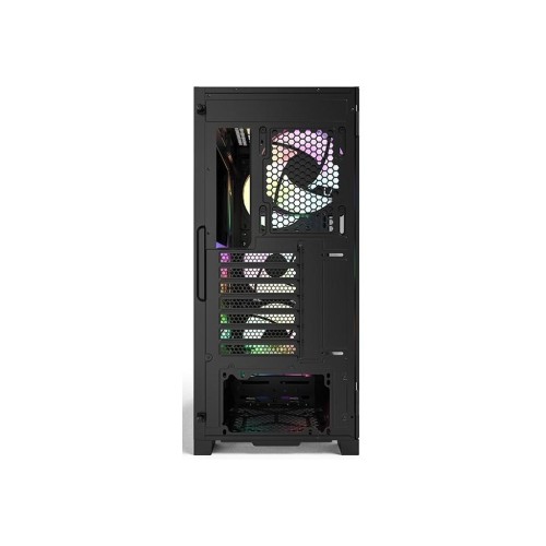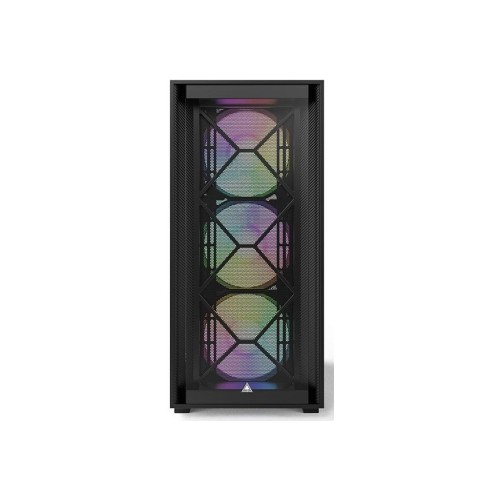 Попередньо встановлені чотири вентилятори — три по 140 мм спереду та один 120 мм ззаду — забезпечують ефективний охолоджувальний потік повітря. Завдяки цьому ваші компоненти завжди залишатимуться в оптимальному температурному режимі. Арсенал вентиляторів також підкріплений ARGB-підсвічуванням, яке можна керувати через програмне забезпечення материнської плати або кнопкою на корпусі, дозволяючи насолоджуватися дев'ятьма світловими ефектами.