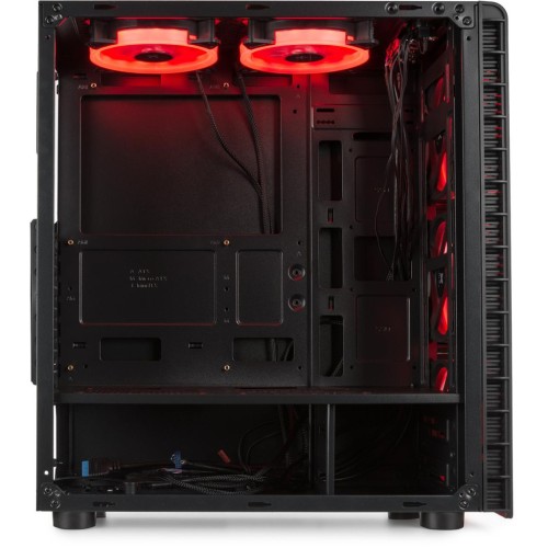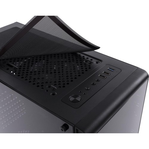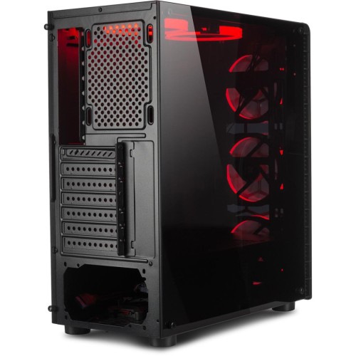 Естетичний вигляд корпусу продуманий до дрібниць. Затемнене скло товщиною близько 4 мм накриває практично всю передню частину панелі, створюючи враження монументальності та сучасності. Завдяки вікону на бічній панелі, ви матимете змогу постійно милуватися своїм "залізом". Це особливо важливо з урахуванням того, що корпус укомплектований п'ятьма охолоджувальними вентиляторами по 120 мм, обладнаними підсвічуванням, яке додає візуального задоволення. Також передбачено місце для додаткового вентилятора ззаду розміром 120 мм.