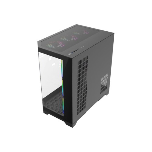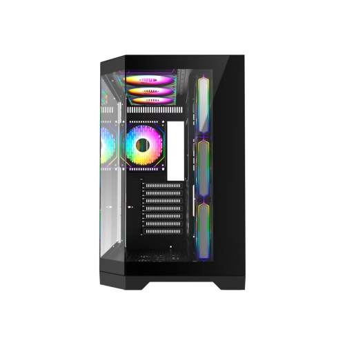 • Корпус комп’ютера зосереджений на охолодженні – 3 попередньо встановлених 120-мм вентилятори ARGB – 3 збоку та один у задній частині корпусу